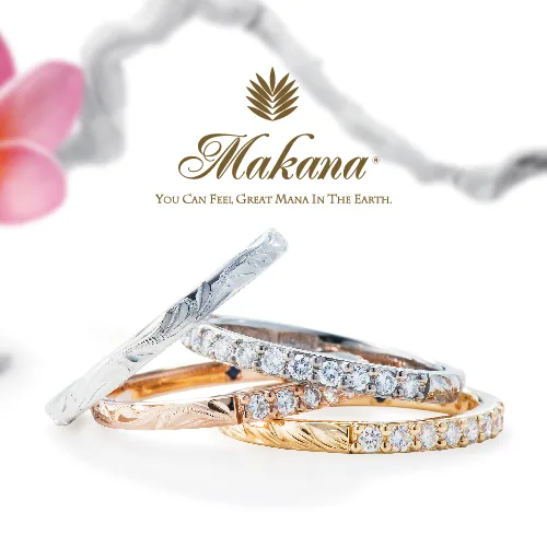 ハワイのもつ心地よく安らかな波と風がモチーフです。途切れることがない波や風は永遠に続く愛を意味し、幸せを運んでくれると言い伝えられています。Makanaだけのオリジナルデザインです。